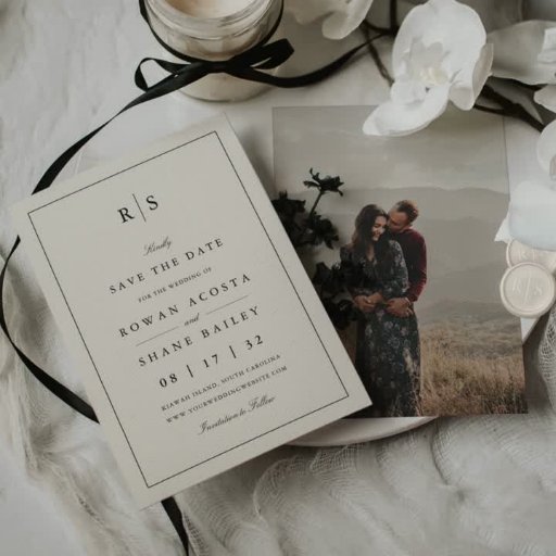 Klassisches Black & Ecru Monogram Wedding Menu