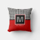 Klassisches Hahnentrittmuster und Monogramm | Rot Kissen