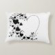 Ein schönes Wurfskissen mit einem klassischen Schwarzweiss-Entwurf. Eine Seite ist mit einer schwarzen Kontur eines Herzens mit schöner Schwarzrollearbeit weiß. Die andere Seite ist mit einem ausgedehnten Entwurf der Herzen und des Wirbel im Weiß schwarz. Ein sehr nobles auf einer Couch oder einem Bett zu habendes Kissen.