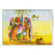 Diese schöne Malerei ist in eine leere Grußkarte umgewandelt worden. Sie stellt sechs Frauen dar, die um einen Baum stehend sind und klatscht. Sie waren zu gut im Begriff, Wasser zu holen, aber entschieden, Klatsch stattdessen zu flüstern. Er findet in den Wüsten von Rajasthan, Indien statt.