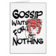 Retro Grafik der Frau mit dem roten Haar in den Lockenwicklern sprechend an einem Telefon. "Klatsch wartet nichts"
