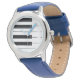 Kinderuhr aus Edelstahl mit blauem Lederarmband
