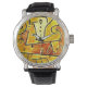 Uhr, Vintage Männeruhr mit schwarzem Lederarmband