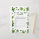 Erleben Sie mit diesem Kleeblatt Word Scramble-Spiel ein wenig Spaß bei einer Babydusche! Design-Features, ein Sortiment von Aquarellfarben-Kleeblättern in Grüntönen. Die Antworten finden Sie auf der Rückseite. Für eine erweiterte Anpassung dieses Designs, wählen Sie einfach den Link "Weiter anpassen" nach der Personalisierung!