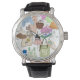 Uhr, Vintage Männeruhr mit schwarzem Lederarmband