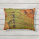 Das abstrakte Blatt-Kunstwerk von ZoeSPEAK auf diesem Accent Kissen wurde aus Zoes Originalfoto von königlichen poinciana-Blätter gemacht. Das Foto ist ein Oberteil des jungen Baumes, dessen winzige Blätter in Reihen ein zartes, grünes und orangefarbenes Muster bilden.