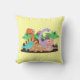 Niedliche kleine Dinosaurier mit individuellem Design auf einem gelben und weißen Polka-Dot-Hintergrund.