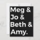 Klassisches Design, perfekt für alle, die Kleine Frauen Liebe! Meg & Jo & Beth & Amy, die Hauptfiguren von Little Women, ein berühmter Roman von Louisa May Alcott. Akzentuieren Sie Ihren Stil und Raum mit dieser klassischen Kunst! Gutes Geschenk für jeden englischen Literaturfans.