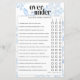 Mit diesem kleinen Schneeflocke Over Under Guessing Game vom Gelben Mondflugschiff Atelier können Sie sich in Ihrer Winterdusche amüsieren. Mit einem weichen, blauen Schneeflocken-Design fügt dieses Spiel Ihrem winterlichen Fest ein spielerisches Element hinzu. Die Gäste werden sich freuen, zu erraten, ob bestimmte Babyfakte über oder unter der angegebenen Nummer liegen, was es zu einem Spaß macht, alle an der Dusche zu treffen. Weitere Anpassungen können Sie per E-Mail hi.yellowmoonatelier@gmail.com. Entdecken Sie die Erholung der Little Snowflake Baby Shower Collection von Yellow Moon Atelier, um eine wunderbar koordinierte Veranstaltung zu schaffen!