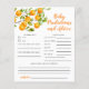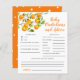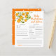 Niedliche kleine Süsse Thema Baby Dusche Babyvorhersagen und Ratschläge Karte mit Illustrationen von Orange auf einem Baum Zweig. Perfektes Spiel während der Dusche zu spielen und wird definitiv ein toller Sake sein! Die Karte frage den Gästen vorherzusagen, wie das Baby aussehen würde.