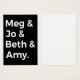 Meg & Jo & Beth & Amy, die Hauptfiguren von Little Women, ein berühmter Roman von Louisa May Alcott geschrieben.