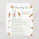 Geschlechtsneutrale Babydusche Mit dem Sprichwort "A LITTLE BUNNY IS ON THE WAY!", eine Illustration eines Aquarellhasen (Kaninchen) mit Karotten in Pfoten und vielen orangefarbenen Karotten. Matching-Elemente verfügbar.