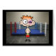 Niedlicher Cartoon Boxer mit orangefarbenen Haaren und roten Hosen, stehend vor dem Ring mit einem großen lila Shiner. Dieser kleine Typ ist ein Meister in der Herstellung!