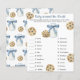 Ein kleiner Keks ist unterwegs! Party mit Duschkabine. Aquarellkekse mit Schokolade und Flaschenmilch mit blauem Bogen.