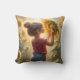 Kleines Mädchen auf dem Sonnenblumenfeld Kissen