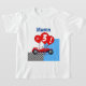 Erstellen Sie Ihr eigenes Geburtstagsgeschenk-Shirt! Rotes Auto mit hellblauer und karierter Flagge. Einfach anzupassen!