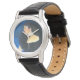 Uhr, Klassische Damenuhr mit schwarzen Lederarmband