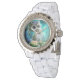 Eine wunderbare Damenuhr mit weißem Armband und grün-weiß-kariertem Ziffernblatt. Trägt sich ganz fabelhaft. Exzellenter Druck, sehr klare Farben. Schönes Design.