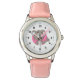Kinderuhr aus Edelstahl mit rosa Lederarmband