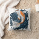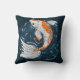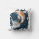 Ein lebendiger Koi-Fisch mit orangefarbenen und weißen Schuppen schwimmt sanft inmitten des wirbelnden dunkelblauen Wassers. Die dynamische Bewegung des Wassers schafft eine energetische Kulisse, die die Eleganz des Fisches unterstreicht.