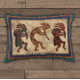 Im Südwesten inspiriert Kokopelli Kissen, umgeben von einer zauberhaften Gingham-Grenze Drei Kokopelli-Tänzer in Erdtönen auf einem natürlichen, steinstrukturierten Hintergrund. Eine braune Gingham-Grenze umgibt die Kunst mit Akzenten von königlichen und aquamarinen.