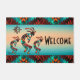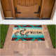 Personalisieren Sie diese einzigartige "Eine von einer Art" Südwest Kokopelli Doormat! Es gibt eine Drei Kokopelli, die Flute und Tanzen unter der Sonne auf einem türkisfarbenen und orangen Sonnenuntergang spielen...Umgeben von einer Südwestgrenze in Türkis, Orange und Schwarz. Das ist ein originelles Kunstdesign des Künstlers Kerry Miller.