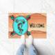 Personalisieren Sie diese einzigartige "Eine von einer Art" Südwest Kokopelli Doormat! Es verfügt über einen Kokopelli, der Flute und Tanzen unter der Sonne auf einem türkisfarbenen Hintergrund spielt, umgeben von einer Südwestgrenze in Türkis, Orange und Schwarz Flammen...auf einem Wüstenhintergrund! Das ist ein originelles Kunstdesign des Künstlers Kerry Miller.