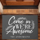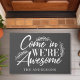 Komm rein, wir sind Phantastisch Grauer Funny Familie Doormat. Diese rustikale Türmatte verfügt über ein modernes Skript mit rustikalen Laurel Olivenzweig Akzente. Personalisieren Sie dieses lustige Design mit Ihrem eigenen Familiennamen. Macht das perfekte Geschenk für die Hauswärmung.