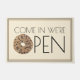 Design zeigt eine originelle Marker-Illustration eines leckeren alles Bagel, mit Mohnsamen, Sesamsamen, Zwiebelflocken, Salz und viel Knoblauch überzogen, und COME IN WE'RE OFFEN in einem lustigen Schriftart. Ideal für eine Bäckerei, ein Café, ein Café oder ein Deli. Dieses Feinschmecker-Design ist auch auf anderen Produkten erhältlich. In diesem Shop finden Sie auch viele weitere Illustrationen zum Thema Essen. Sehen Sie nicht, wonach Sie suchen? Brauchen Sie Hilfe bei der Anpassung? Kontaktieren Sie Rebecca, um etwas für Sie entworfen zu haben.