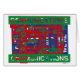 Ich verbrachte etwa ein Jahr damit, als hausinterner Grafikdesigner für eine Fertigungsfirma in Torrance, Kalifornien, zu arbeiten, wo sie Zeichenschreibmaschinen und das selbstklebende Klebeband produzierten, das in den Maschinen verwendet wird. Der Zugang zu viel Klebeband und den Maschinen, und einige Freizeit, führen zu dieser Serie von Stücken, die aus dem Band hergestellt werden. Für den Druck habe ich das Bild gereinigt, um die Farben solider, klarer und definierter zu machen. Selbstklebendes Klebeband auf der Plakatwand, Original App. 12" x 18"; c. 1986.