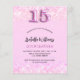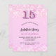 Eine moderne, stilvolle und glamouröse Einladung für eine Girl's Quinceañera, 15. Geburtstagsfeier. Ein rot rosa Hintergrund mit Konfetti. Der Name ist mit einem modernen handgeschriebenen Stilskript geschrieben. Personalisieren Sie Ihre Party-Daten und fügen Sie sie hinzu. Nummer 15 wird mit einem Schriftart im Ballonstil geschrieben, Skript. 1 Blatt = 1 Einladung mit Druckkante bis Kante.