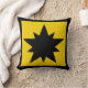 "Oder, eine Mulette von fünf größeren und fünf kleineren Punkten innerhalb eines Grenzgängers." Populace Abzeichen for the Kingdom of Ansteorra (SCA). Die Kissenrückseite ist ein mittelalterliches Muster in der Farbkoordinierung.