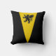 "Sable, auf einem Stapel oder einem Greifen." Die Rückseite des Kissens ist ein Allover-Muster in der Farbkoordinierung.