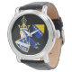 Uhr, Vintage Männeruhr mit schwarzem Lederarmband