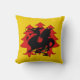 "Oder, drei Kiefernbäume vernichteten Schläuche, über einen Drachenpassant, der eingezäunt ist." (Nicht im Ordinary & Armorial aufgeführt, speziell als Abzeichen für das Königreich Drachenwald, aber es wird häufig als solches verwendet.) Die Kissenrückseite ist ein mittelalterliches Muster in der Farbkoordinierung.