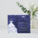 Eine moderne, stilvolle und glamouröse Einladung zu einer Quinceañera, 15. Geburtstagsfeier. Mitternachtsblauer Hintergrund mit Imitaten Glitzer Staub, Tiara und Kleid. Die blaue Farbe ist ungleichmäßig. Der Name ist mit einem modernen handgeschriebenen Stilskript geschrieben. Personalisieren Sie Ihre Party-Daten und fügen Sie sie hinzu.
