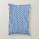 Das Bild weist ein rechteckiges Kissen mit einem blauen und weißen Muster auf, das sich durch seinen hohen Kontrast und seine repetitive Gestaltung auszeichnet. Dieses Muster verleiht dem Kopfkissen ein modernes und stilvolles Aussehen, was es zu einem vielseitigen Accessoire macht, das verschiedene Dekostile ergänzen könnte.