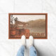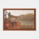 Cougar auf den Felsen. Ein Berglöwe sucht aufmerksam nach potenziellen Beute, zusammen mit dem Textlesen "WILLKOMMEN".