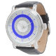 Eine Armbanduhr mit einer kreisförmigen Anordnung, in der die Strahlen angeordnet sind, um die Minuten und Stunden im äußeren Kreis zu markieren. Diese Version hat einen kräftigen ersten inneren Kreis und der zweite innere Ring hat winzige Strahlen. Alle Strahlen reihen sich richtig ein und die Stunden sind mit einer wagemutigeren Linie im äußeren Kreis markiert, die sowohl eine dekorative als auch eine praktische Uhr darstellt.