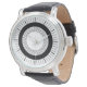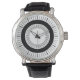 Eine Armbanduhr mit einer kreisförmigen Anordnung, in der die Strahlen angeordnet sind, um die Minuten und Stunden im äußeren Kreis zu markieren. Diese Version hat einen kräftigen ersten inneren Kreis und der zweite innere Ring hat winzige Strahlen. Alle Strahlen reihen sich richtig ein und die Stunden sind mit einer wagemutigeren Linie im äußeren Kreis markiert, die sowohl eine dekorative als auch eine praktische Uhr darstellt.