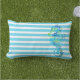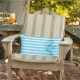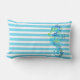 Das Kissen im Freien mit niedlich türkisfarbenen, blauen und weißen Streifen ist mit einem Seepferd bedruckt. Passen Sie dieses Objekt an oder kaufen Sie, wie es ist, Wählen Sie aus drei Größen.