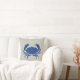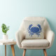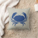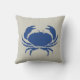 Eine mittlere blaue Krabbe der Marine auf einem natürlichen beige Hintergrund. Entwurfsrückseiten. Vervollkommnen Sie für das Strandhaus oder ein Seethema.
