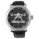 Uhr, Vintage Männeruhr mit schwarzem Lederarmband