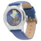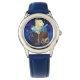 Kinderuhr aus Edelstahl mit blauem Lederarmband