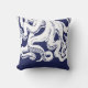 Eine wunderliche weiße Grafik der Krakententakeln, die über der Spitze des Wurfskissens auf einem blauen Hintergrund erreichen. Ein großer Zusatz, ob Sie ein Strandhaus oder gerade haben, ein Stückchen des Strandes in Ihrem Haus wollen.