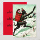 Diese bösen Kinder hören besser auf zu rennen. Dieser Krampusprint zeigt Krampus, der Kinder im Schnee jagt. Ein Kind hat sich schon in seinen Sack gefangen.