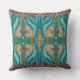 Dieses auffallende Kissen besticht durch eine schöne Anpassung eines Designs aus dem späten 19. Jahrhundert von Charles Voysey. 2 blaue und aqua krane stehen unter dem Schirm von geraniumroten Cockscomb-Blüten auf anmutigen smaragdgrünen Stielen, die ein keltisch beeinflusstes Nest bilden.