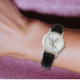 Klassische Damenuhr mit schwarzen Lederarmband