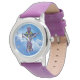 Uhr, Kinderuhr aus Edelstahluhr mit lila Lederarmband