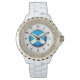 Eine wunderbare Damenuhr mit weißem Armband und grün-weiß-kariertem Ziffernblatt. Trägt sich ganz fabelhaft. Exzellenter Druck, sehr klare Farben. Schönes Design.
